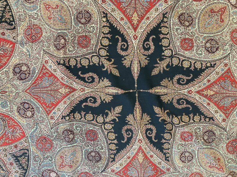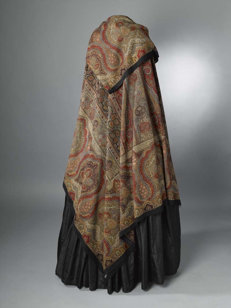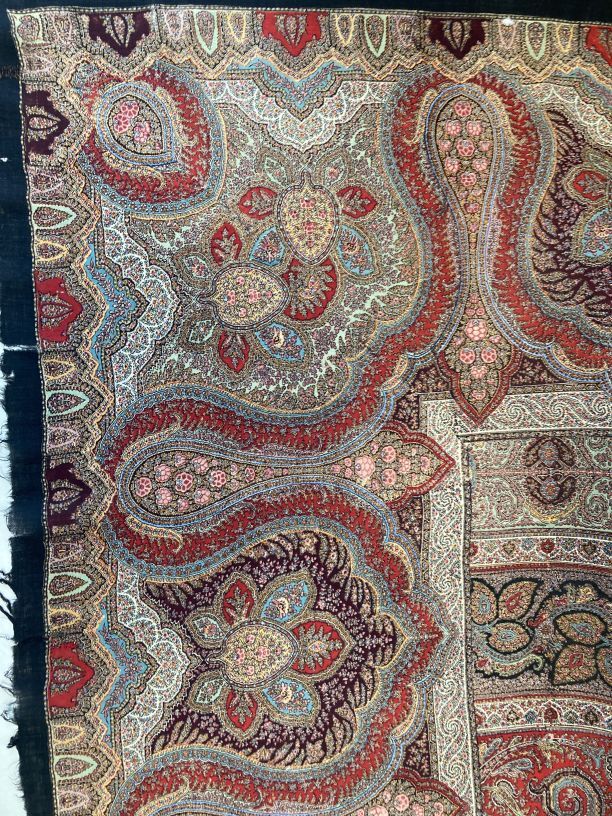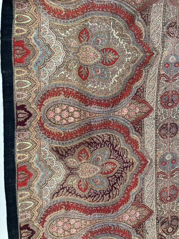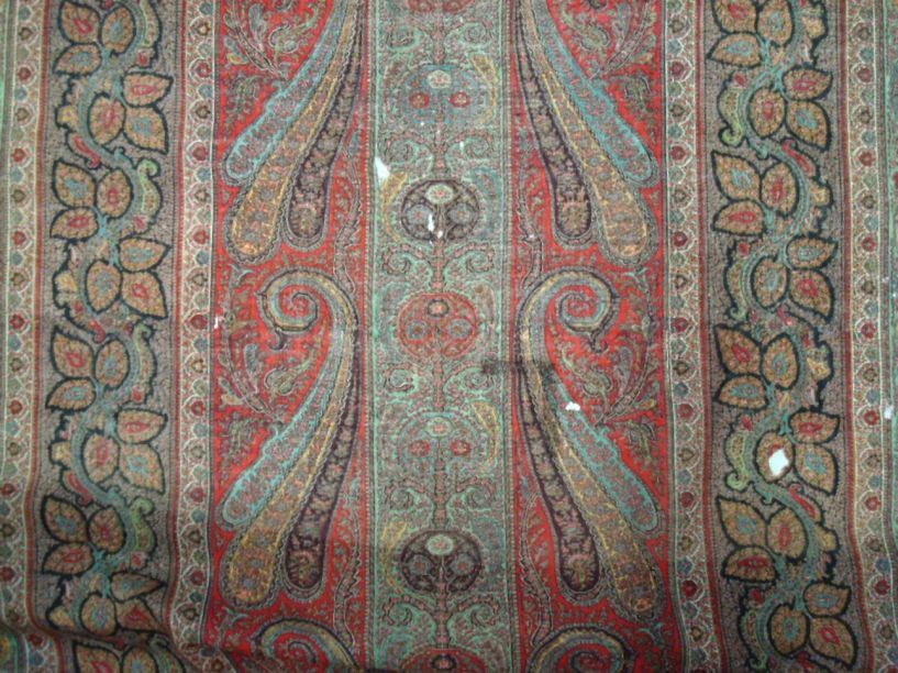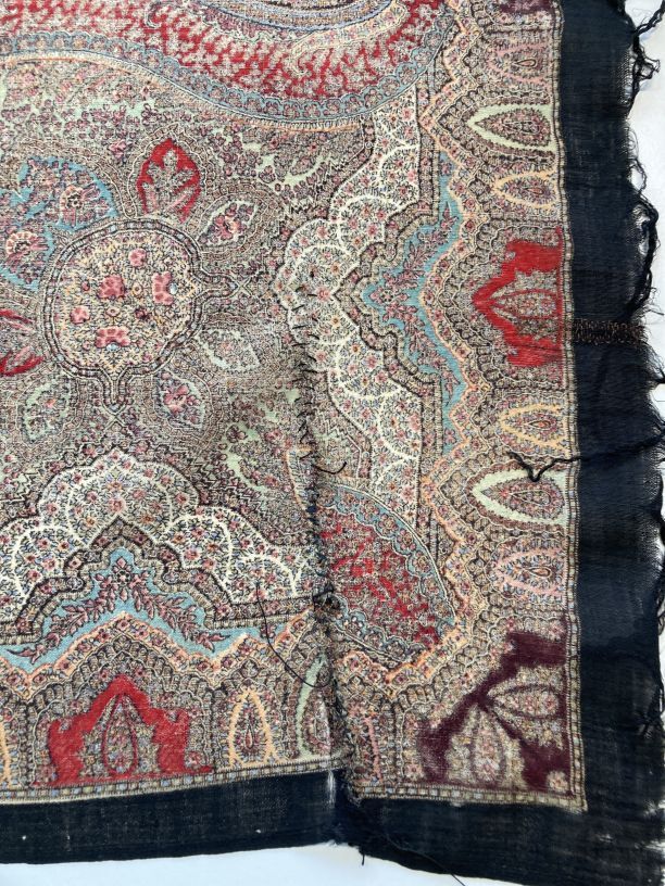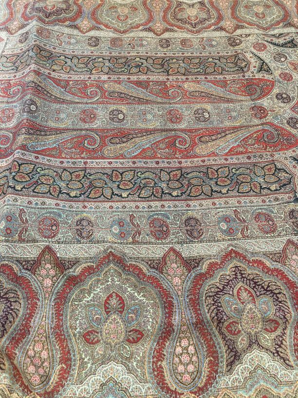 Omslagdoek van bedrukte dunne wol, verticale banen met veelkleurig kasjmierpatroon