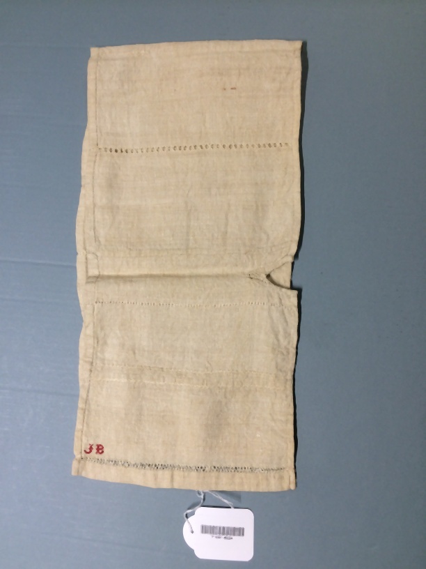 Grof linnen lap, proeflap om naai en borduurwerk te leren, gemerkt J.B., 1894, onderdeel van groep van twee