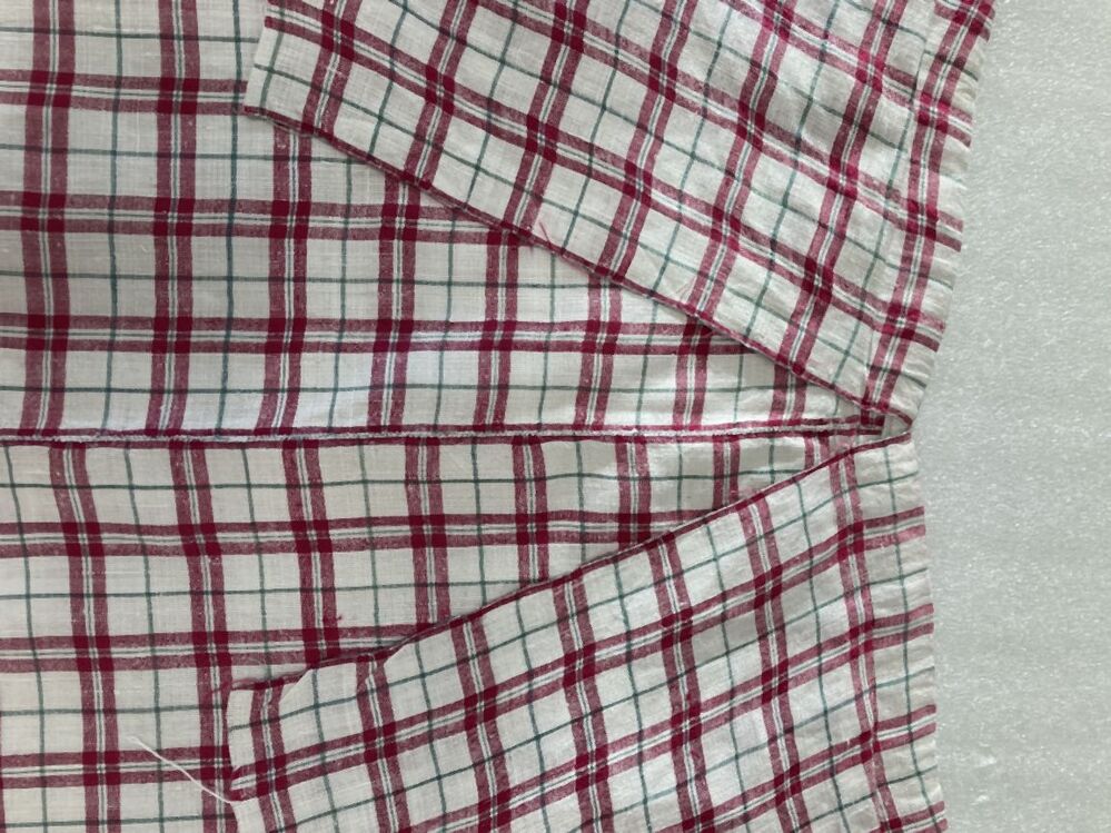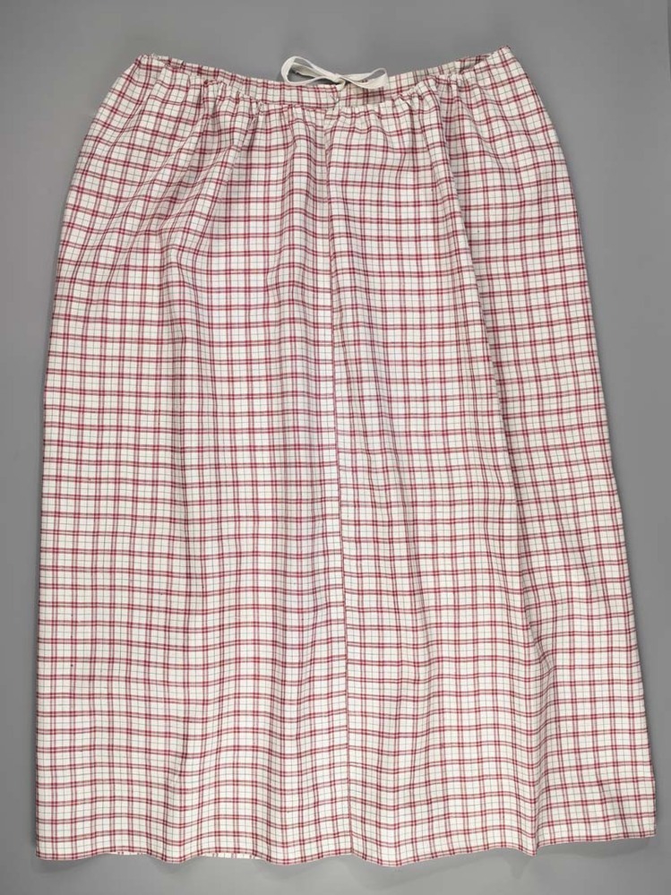 Linnen schort met ingeweven ruiten van rode en groene zijde, zogenaamd Sidenseister