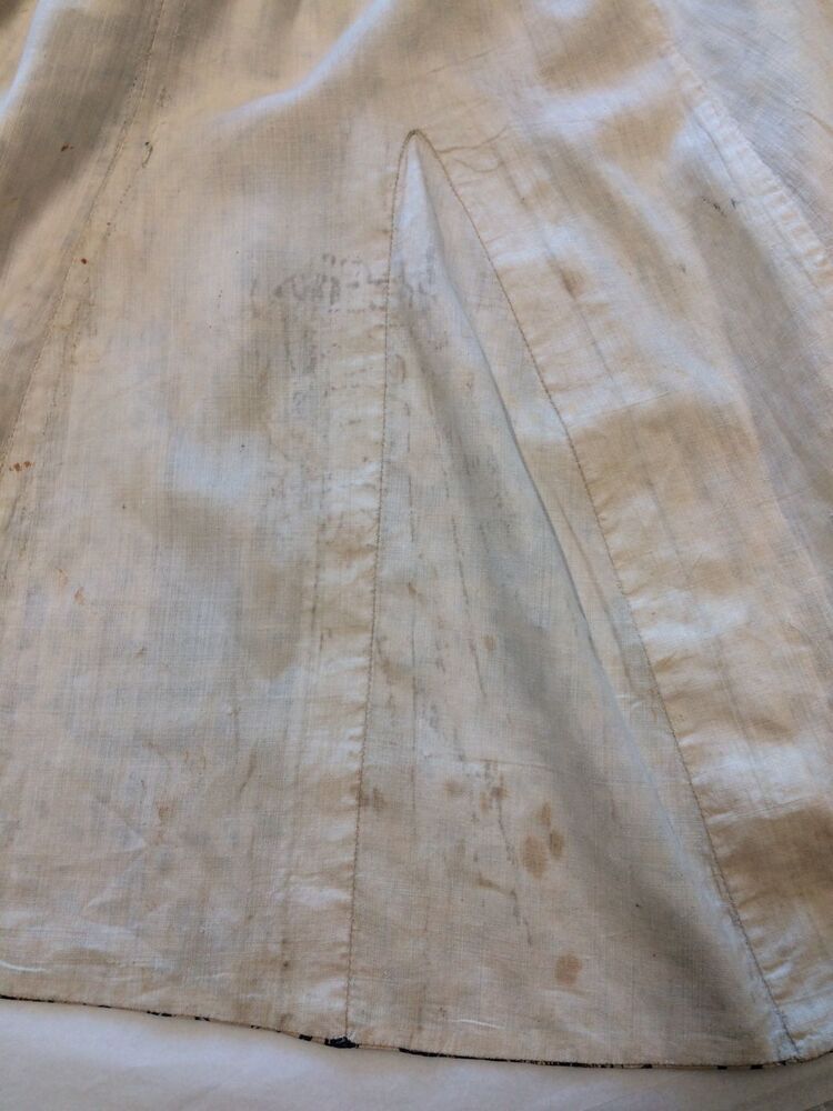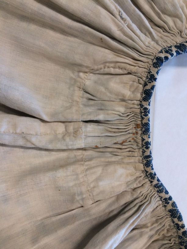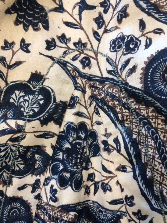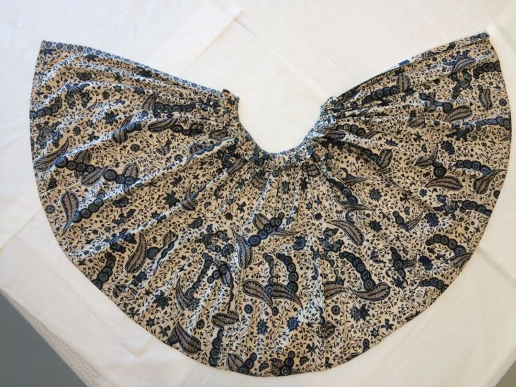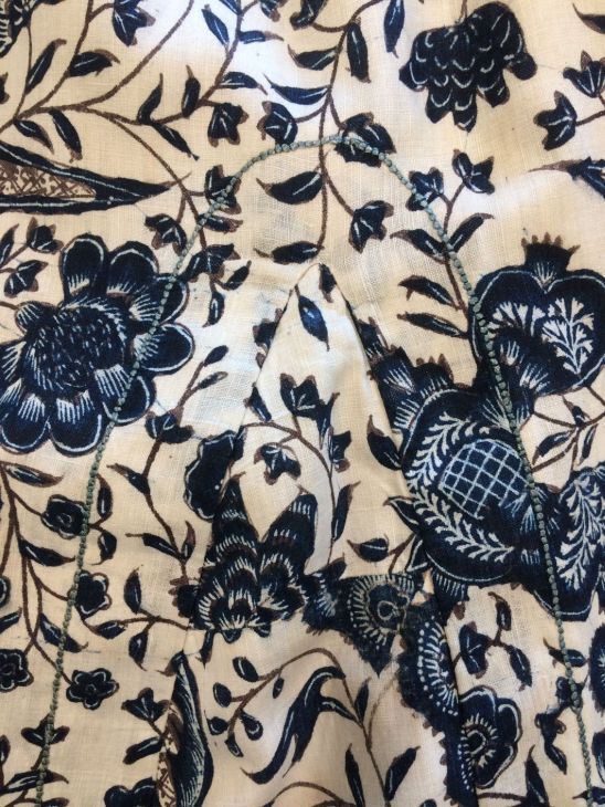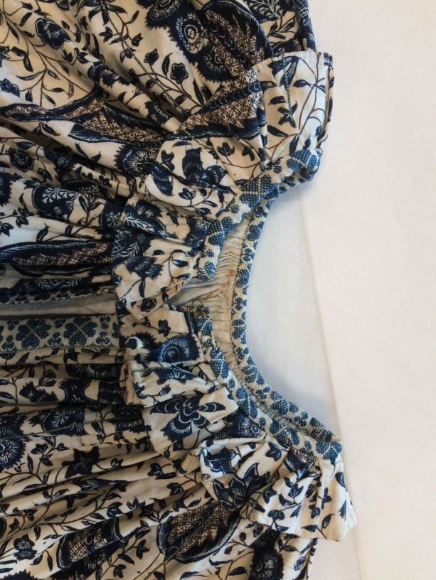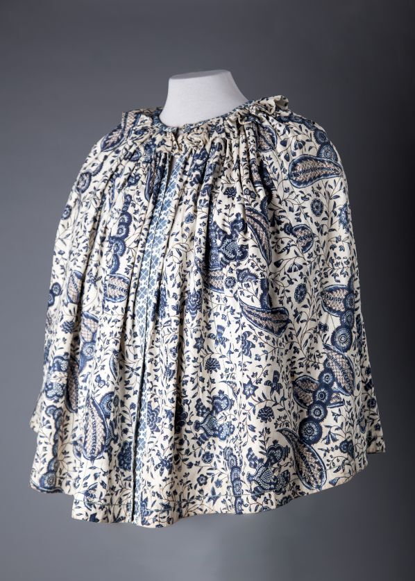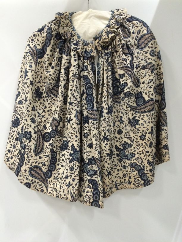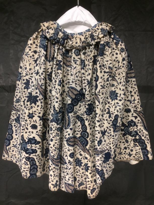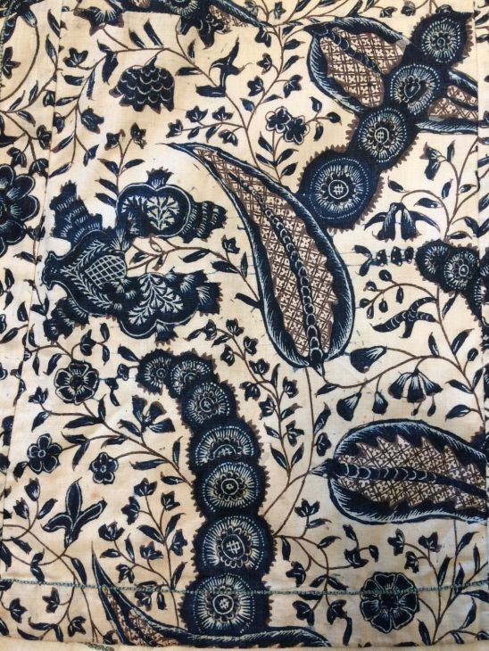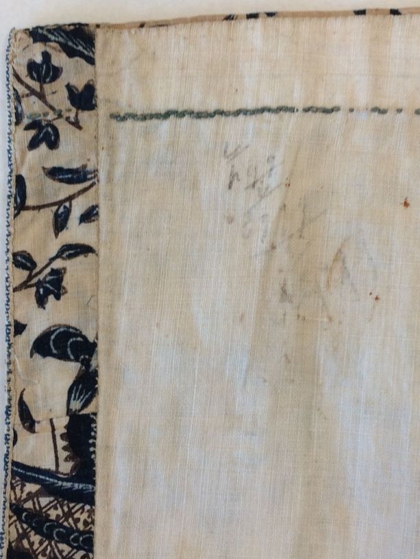 Sitsen 'skooldermantel' of bedcape , gemaakt van Hindelooper wentke, beschilderd met rankpatroon met pluimen en langwerpige bloemtrossen op witte grond