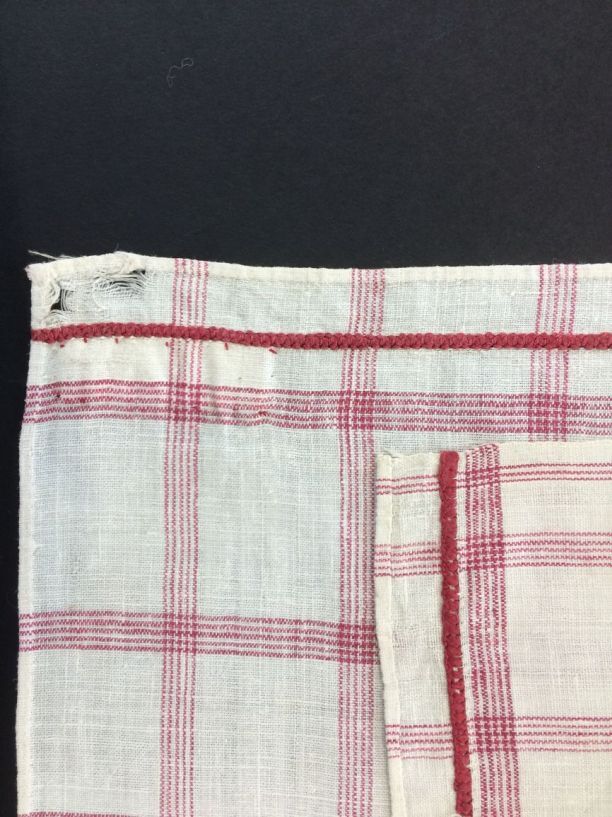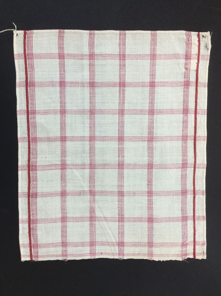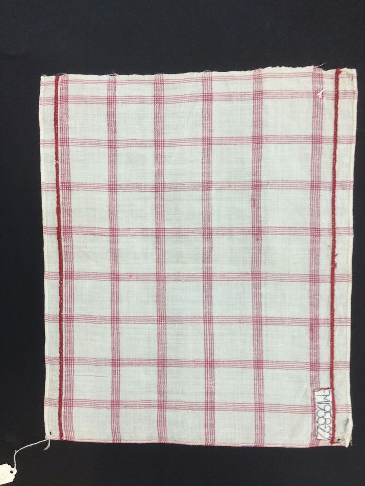 Hindelooper borstlap of foarpeldook van wit en rood bont