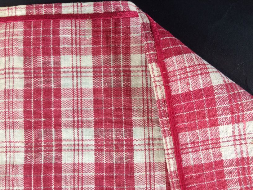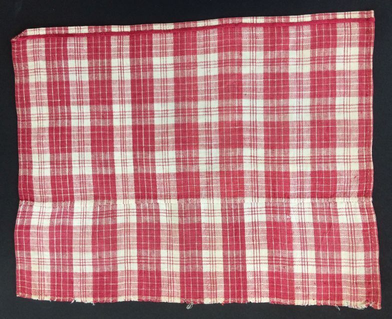 Hindelooper borstlap of foarpeldook van rood en wit bont