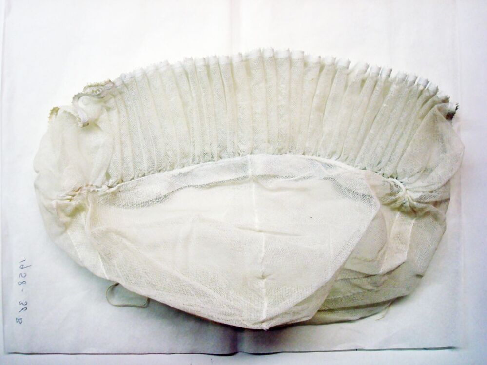 Gepijpte floddermuts van tule (rouw), onderdeel van groep van twee