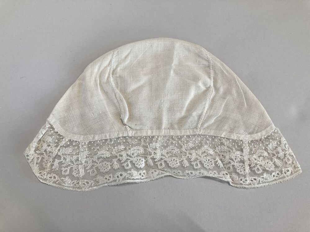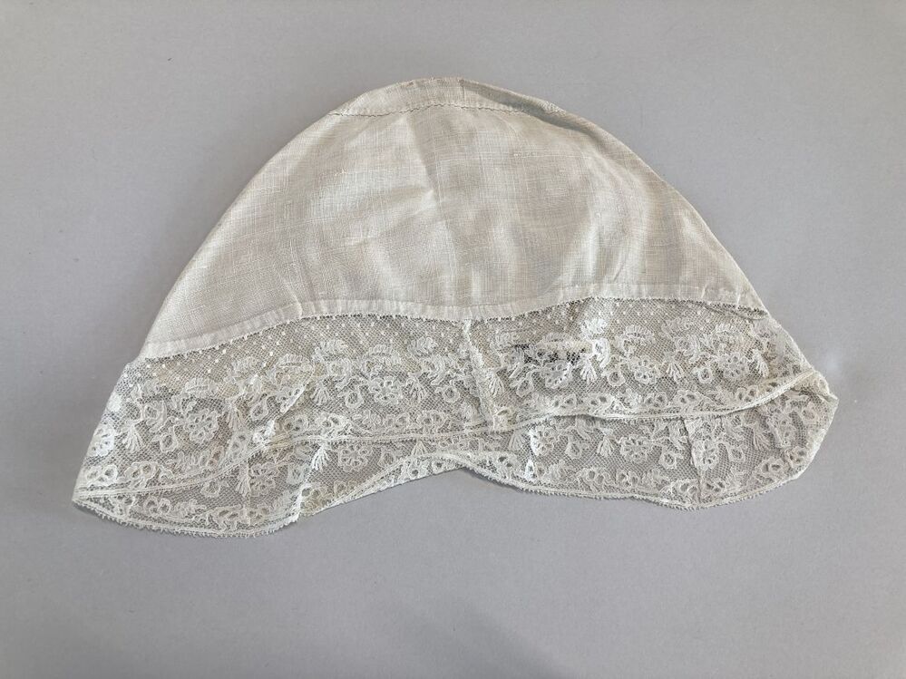 Witte ondermuts of tipmuts met kanten rand,gemerkt M.E.6