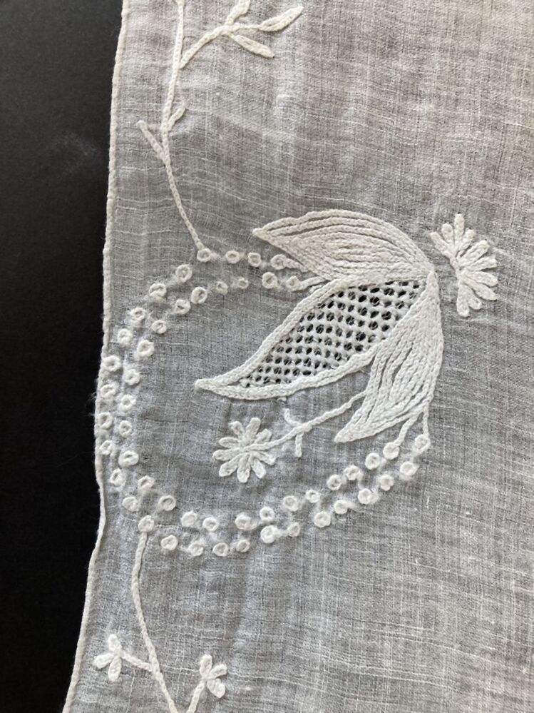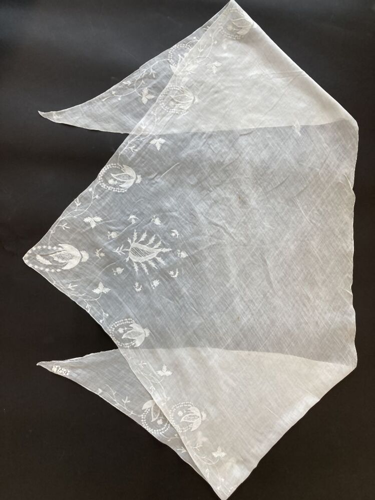 Fichu met aan de korte zijden een rand met tamboureerwerk met perzisch ajour