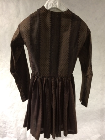 Schootjak van bruin-zwart mohair met ingeweven zigzag-streeppatroon met lange mouwen