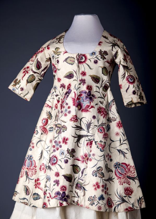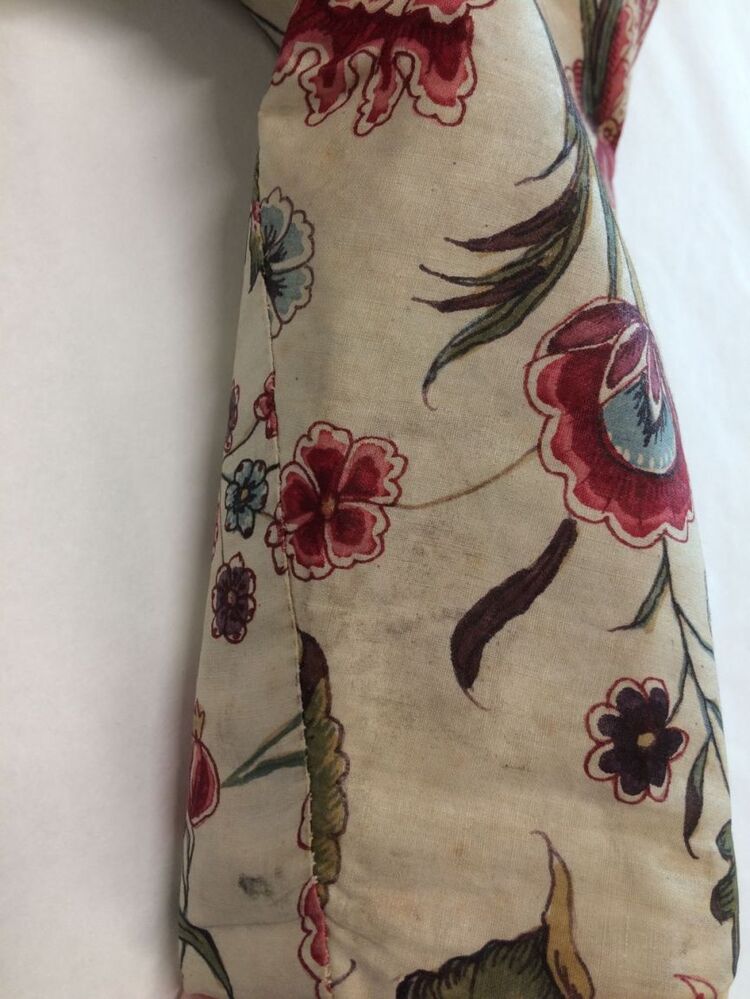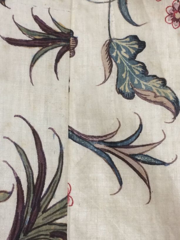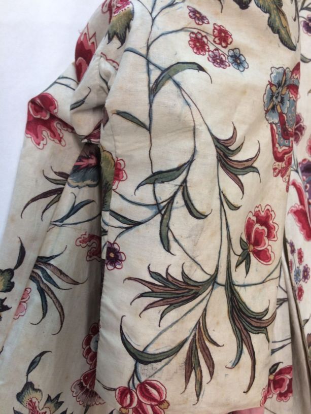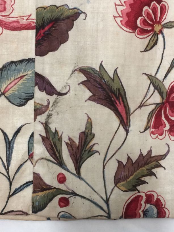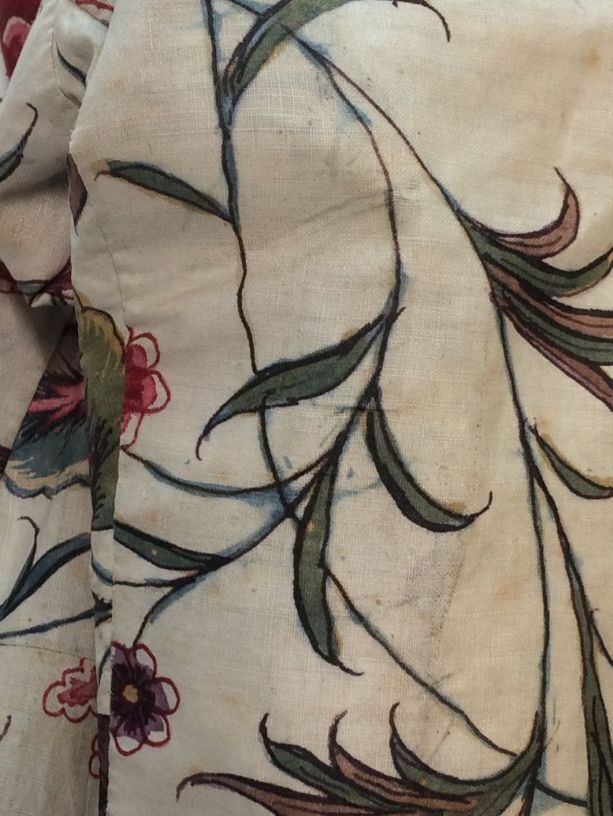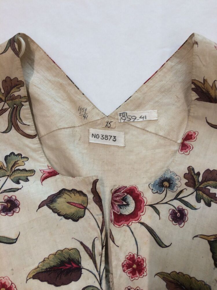 Sitsen vrouwenjak, met fantasievol lotusbloemmotief op witte grond