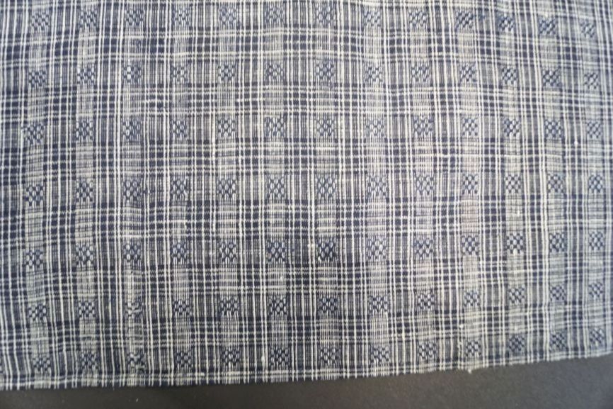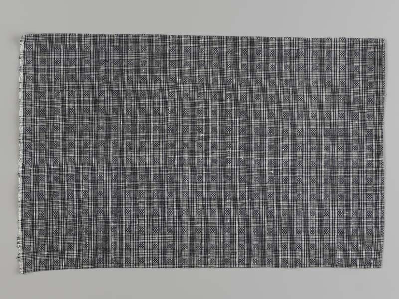 Hindelooper borstlap of foarpeldook van blauw en wit bont, zogenaamd 'stoelemattede'