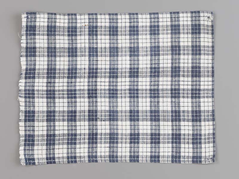 Hindelooper borstlap of foarpeldook van wit en blauw bont, voor de rouw