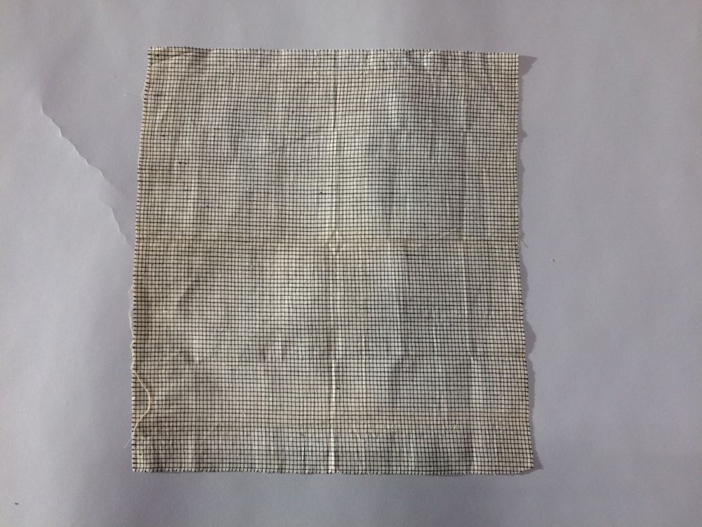 Hindelooper borstlap of foarpeldook van wit en blauw bont katoen