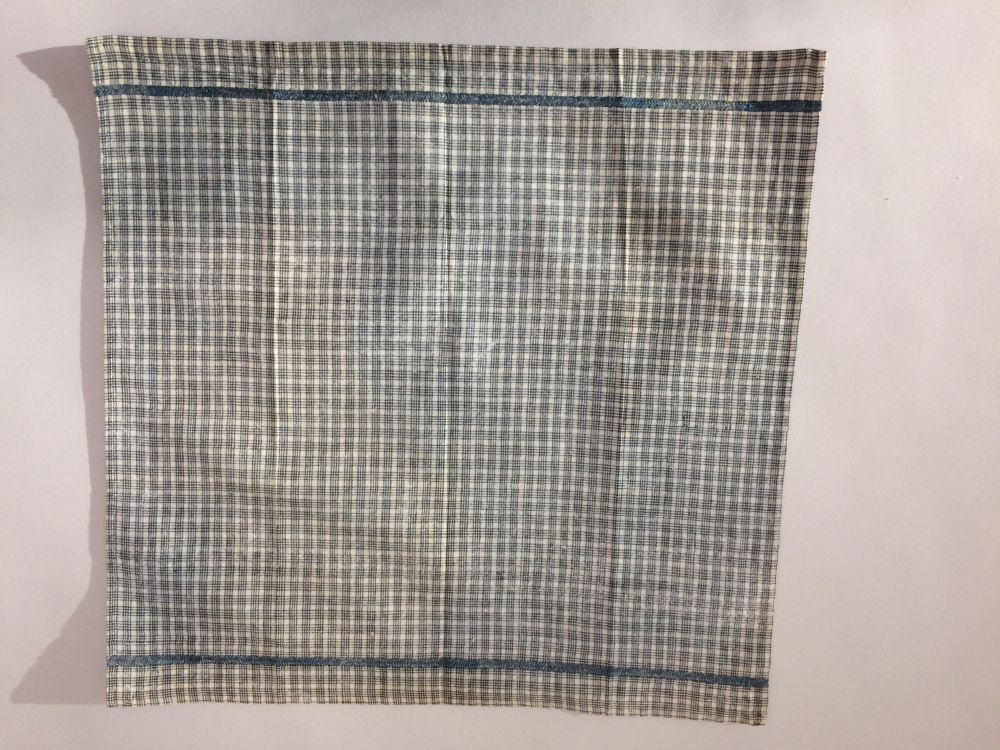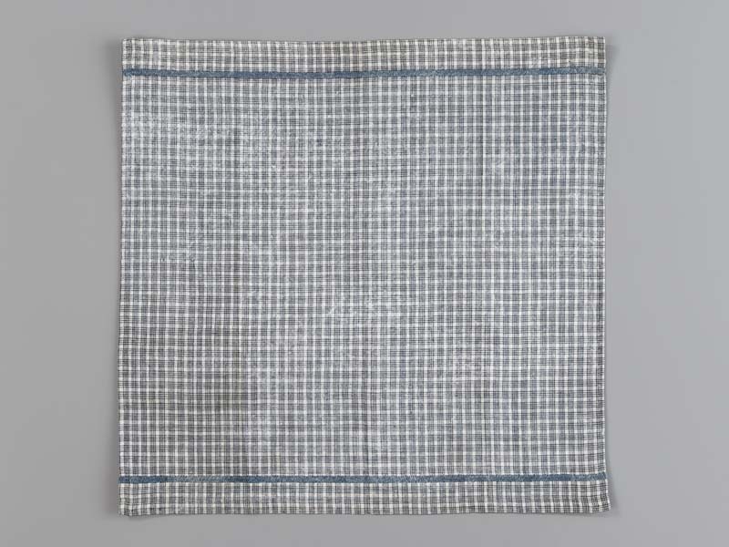 Hindelooper borstlap of foarpeldook van wit en blauw bontvoor de licht rouw.