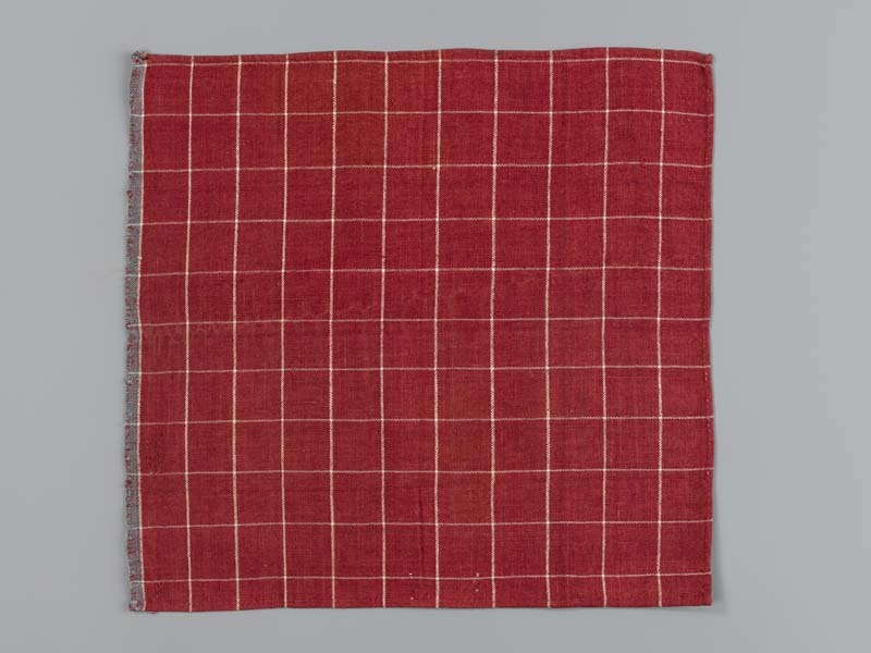 Hindelooper borstlap of foarpeldook van rood en wit bont, keperweefsel