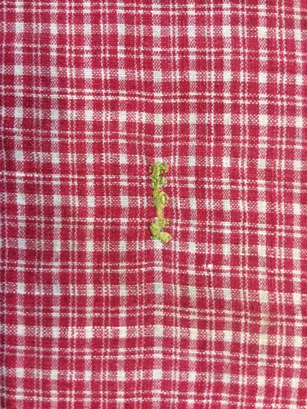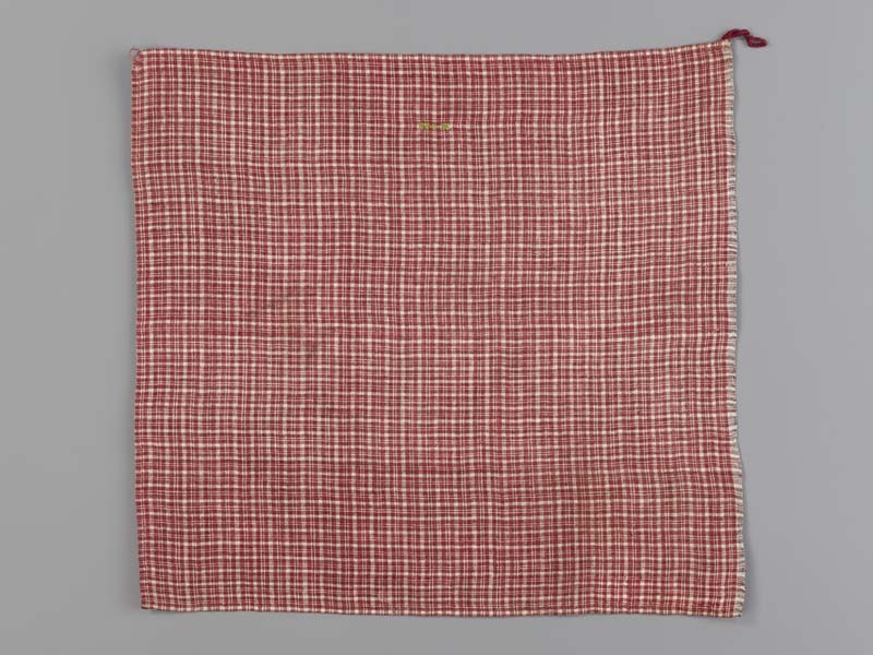 Hindelooper borstlap of foarpeldook van rood en wit bont