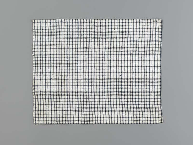 Hindelooper borstlap of foarpeldook van wit met blauw bont