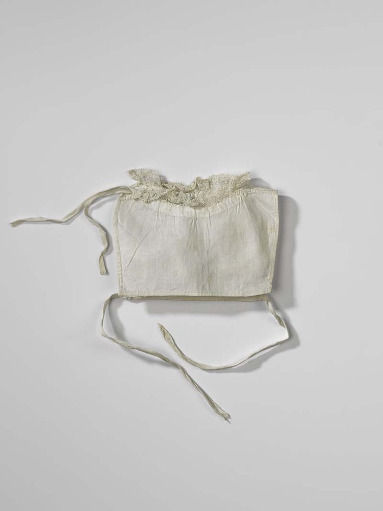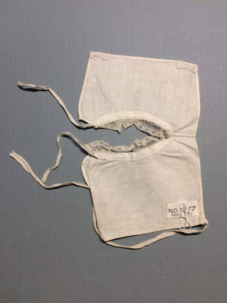 Wit katoenen kroplap met langs de halsrand een machinaal kloskanten randje