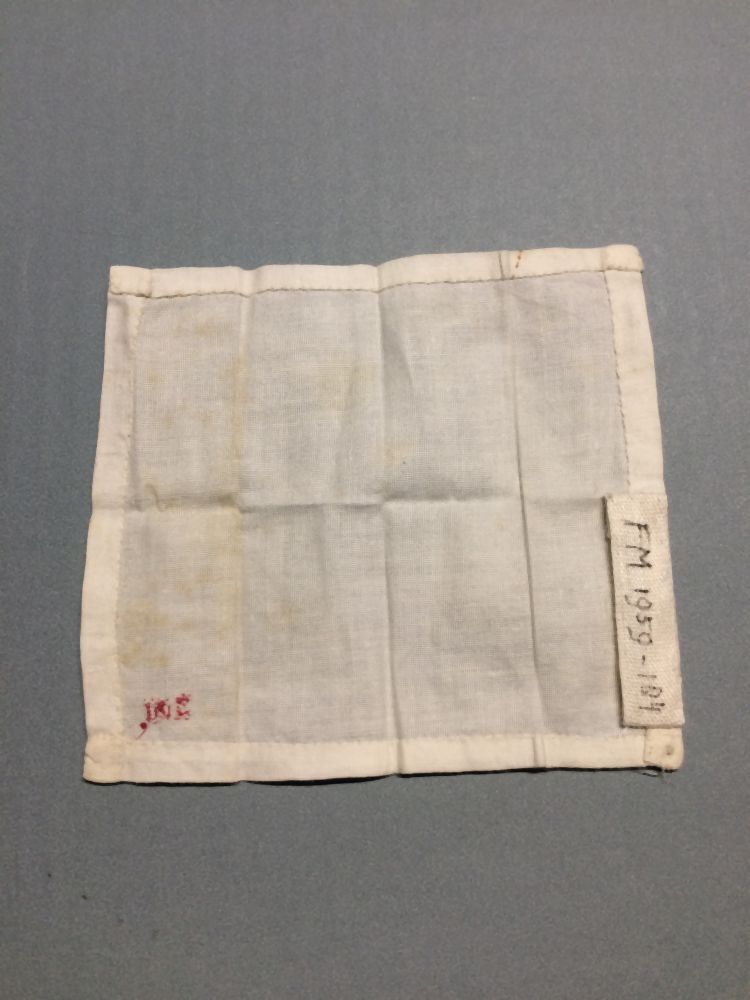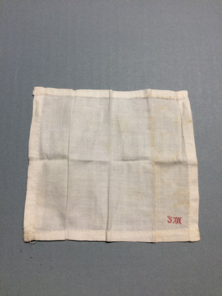 Zakdoekje van wit katoen, gemerkt: S.M.
