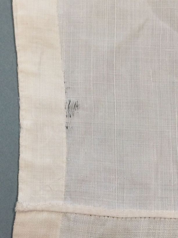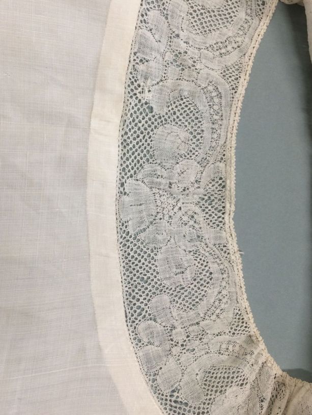 Kroplap van wit linnen met kloskant, binnengekomen met 26 andere objecten