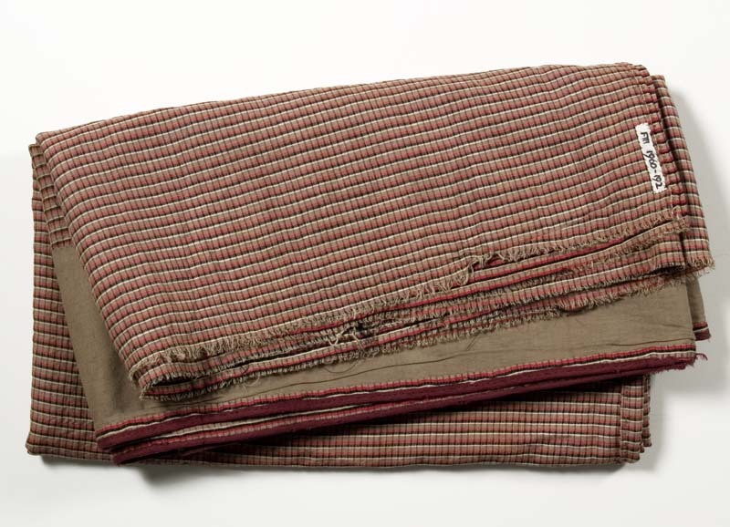 Katoenen rok, bedrukt in rood, zwart, lichtbruin en wit met hokjes patroon