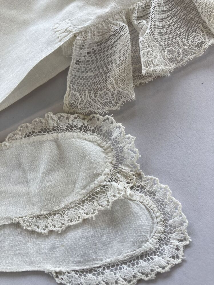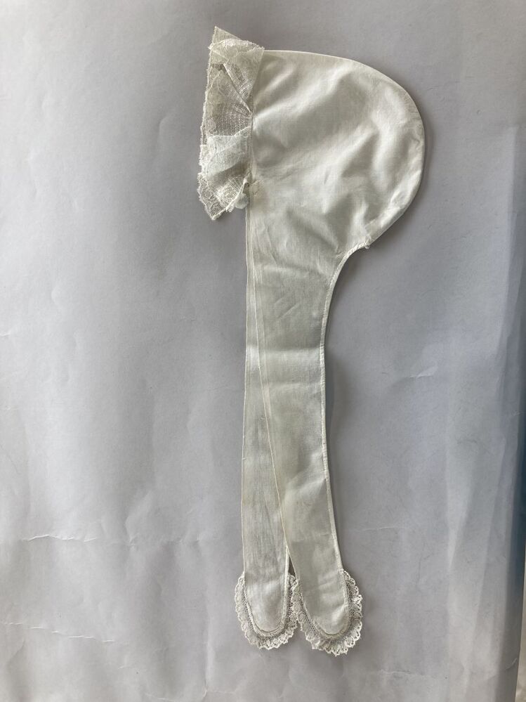Wit katoenen slaapmuts met lange slippen en kanten randje