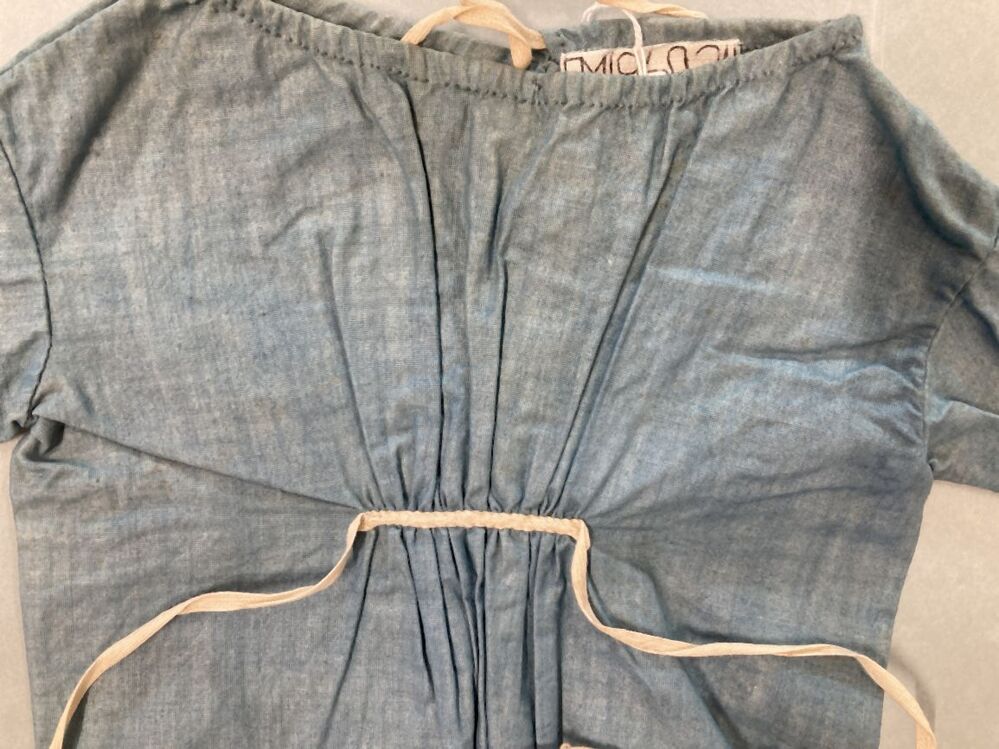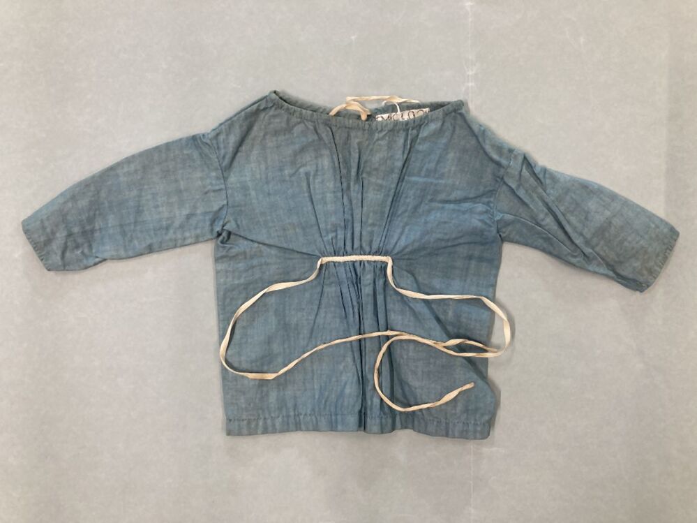 gerimpeld jakje van blauw katoen met lange mouwen