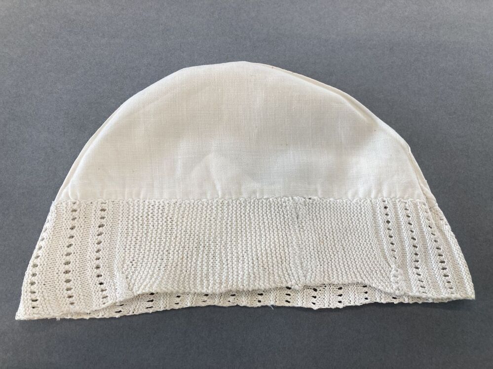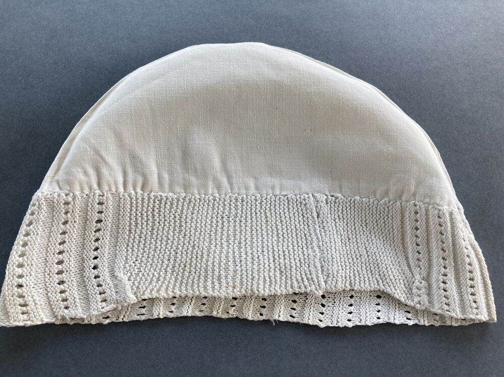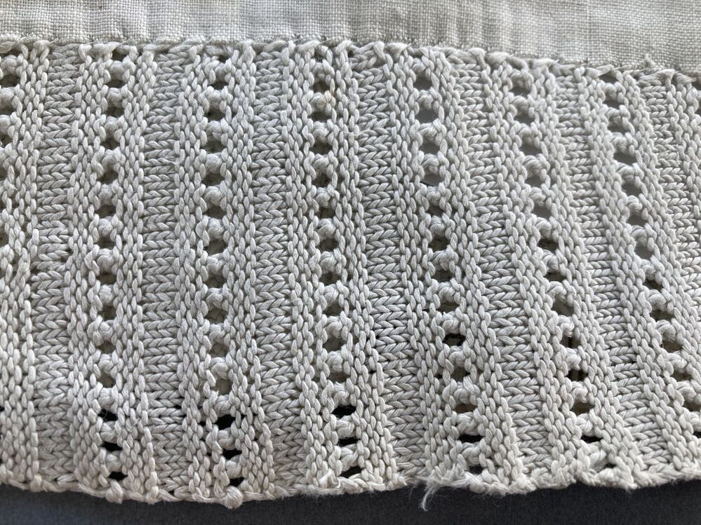 Witte ondermuts met gebreide ajourstrook me ajourstrepen