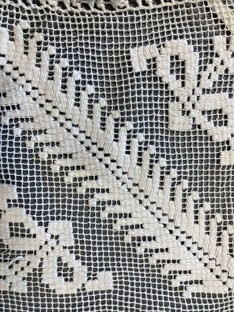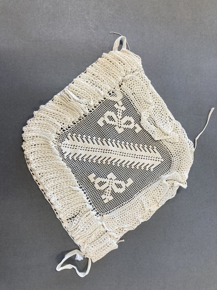 Ochtendmuts met 'hanekam' en filetgeknoopte bol