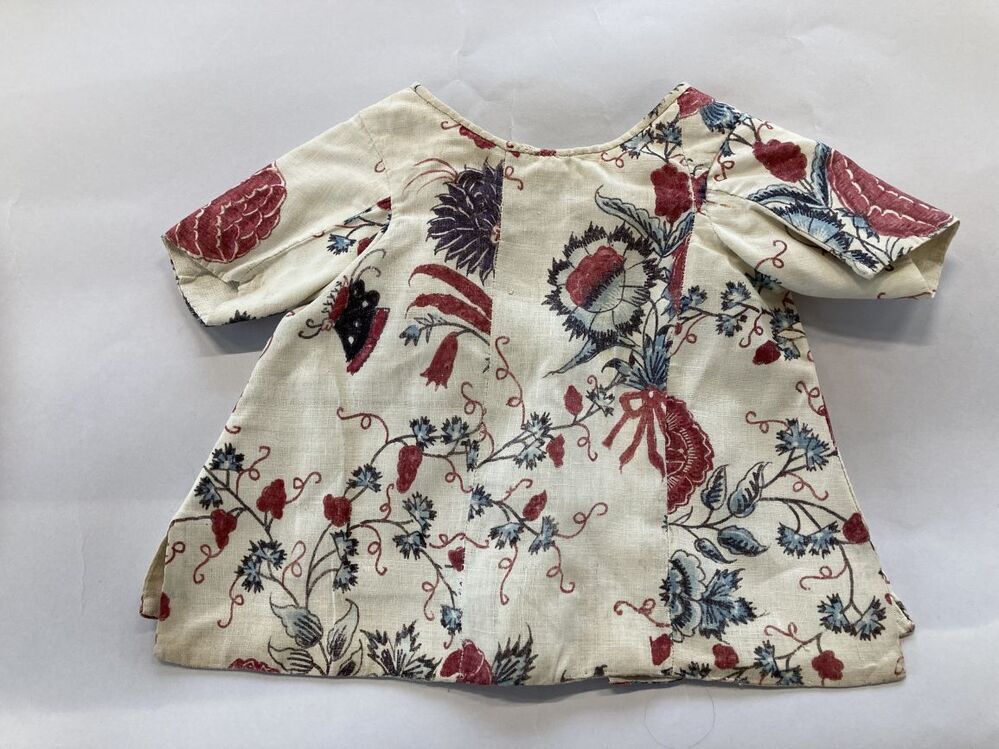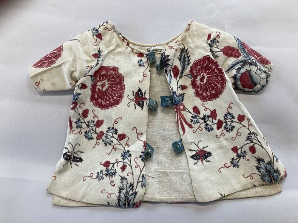 Sitsen babyjakje met korte mouw, met gestrikte boekejes en dunne klimranken op witte grond