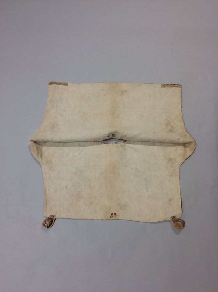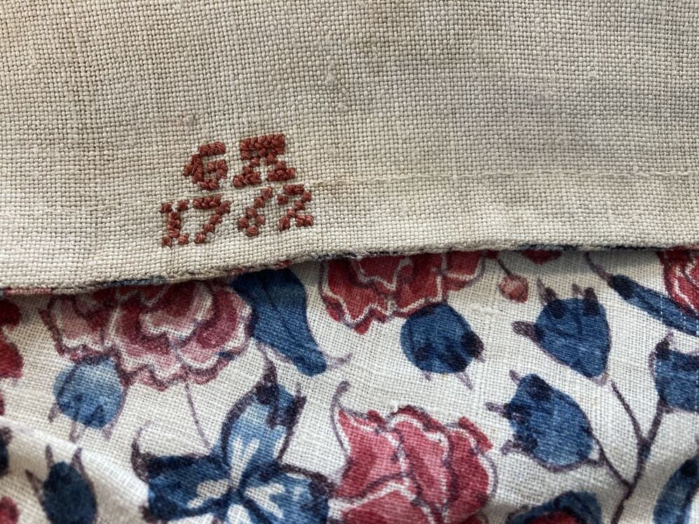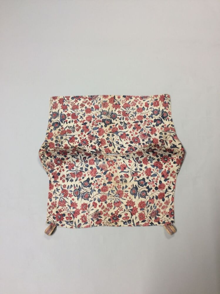 Sitsen vrouwenkroplap ofwel onderst, gemerkt GA 1762, met patroon van bloeiende ranken op witte grond