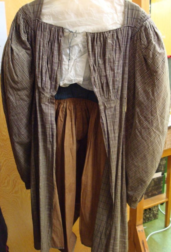 Jak met schapeboutmouwen van grijs geruit katoen met zwart-witte ingeweven ruiten