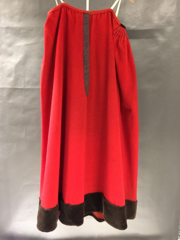 Hindelooper raewolhimd, rood wollen onderrok afgezet met zwart fluwelen zoom.