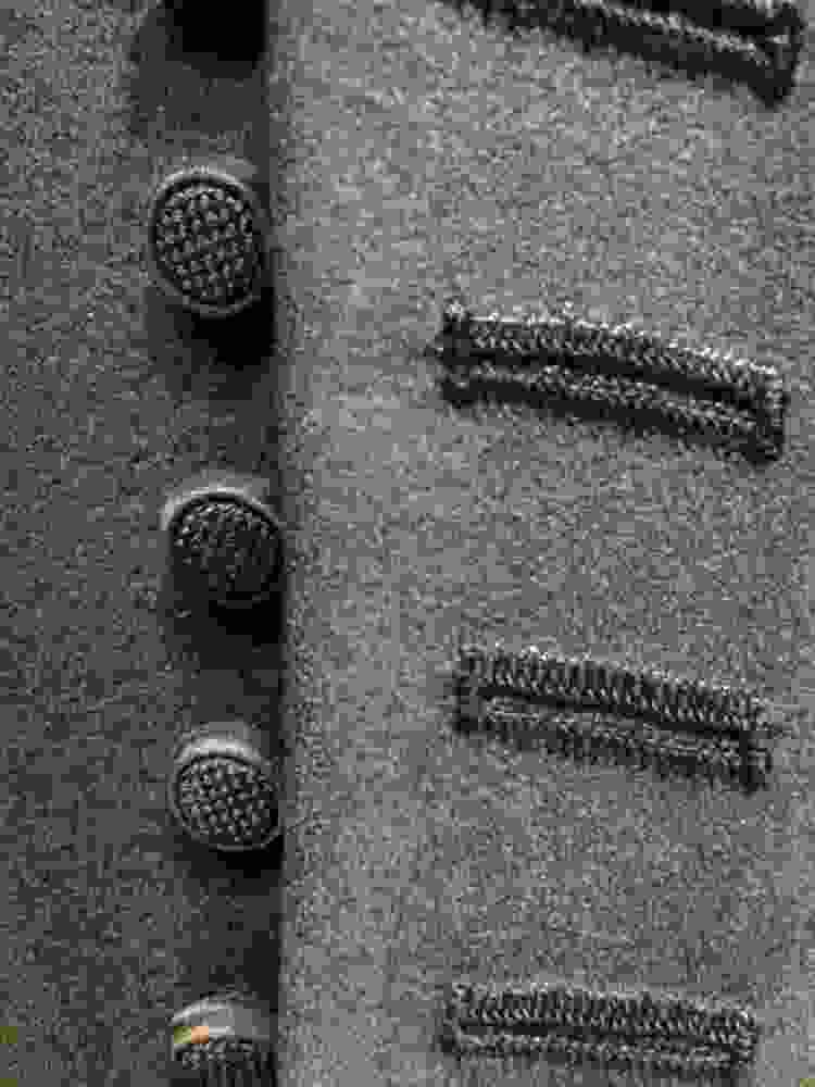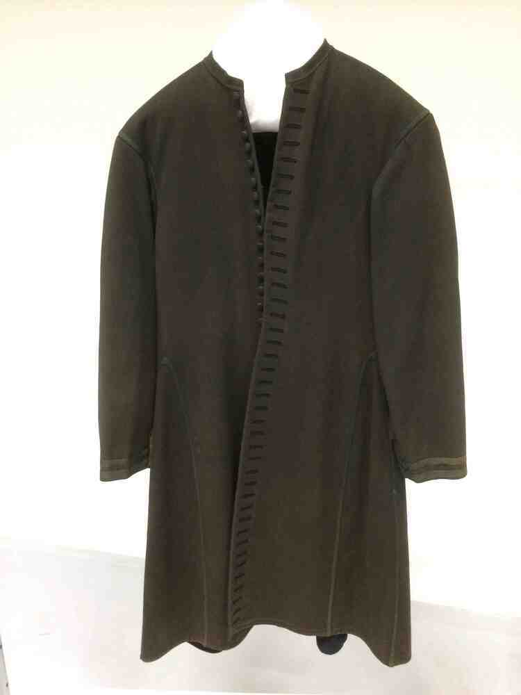 Hindeloper mannenjas van zwart laken, met 37 knopen waarvan drie ontbreken