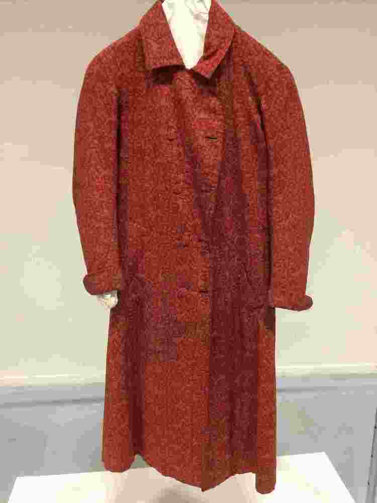 Kamerjas van bruinrode wollen bedrukte stof met zwarte voering