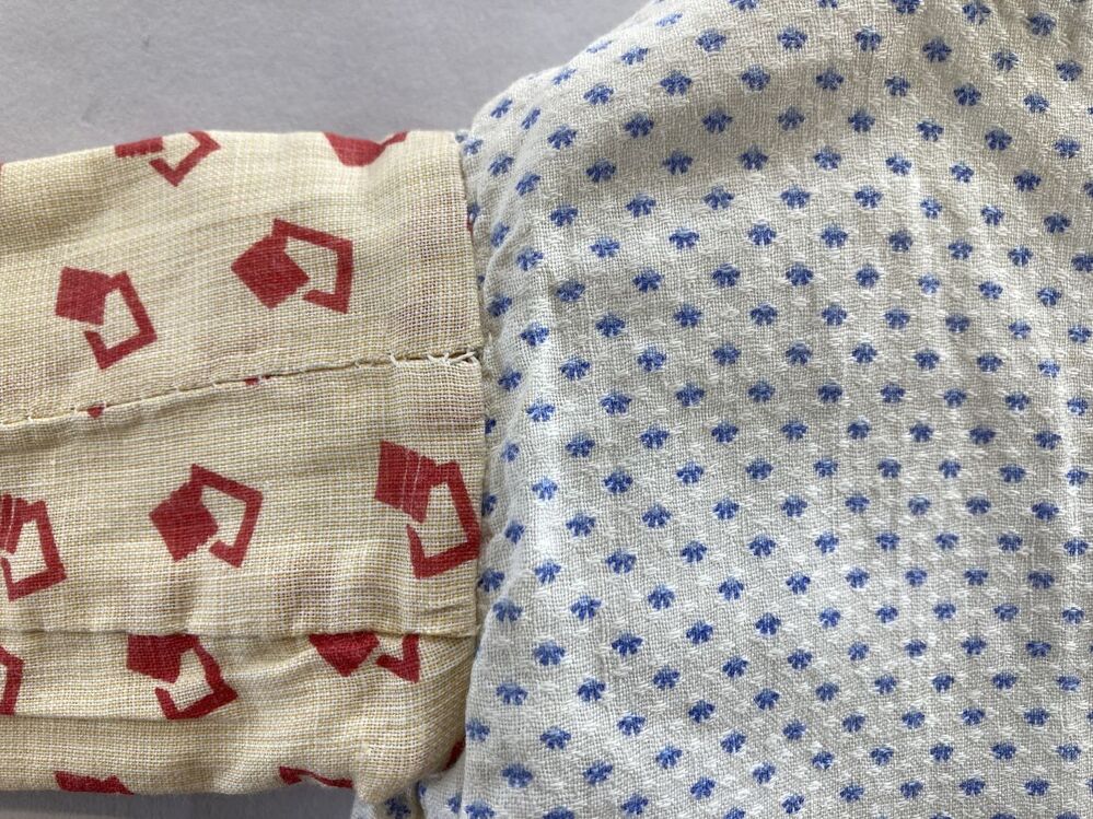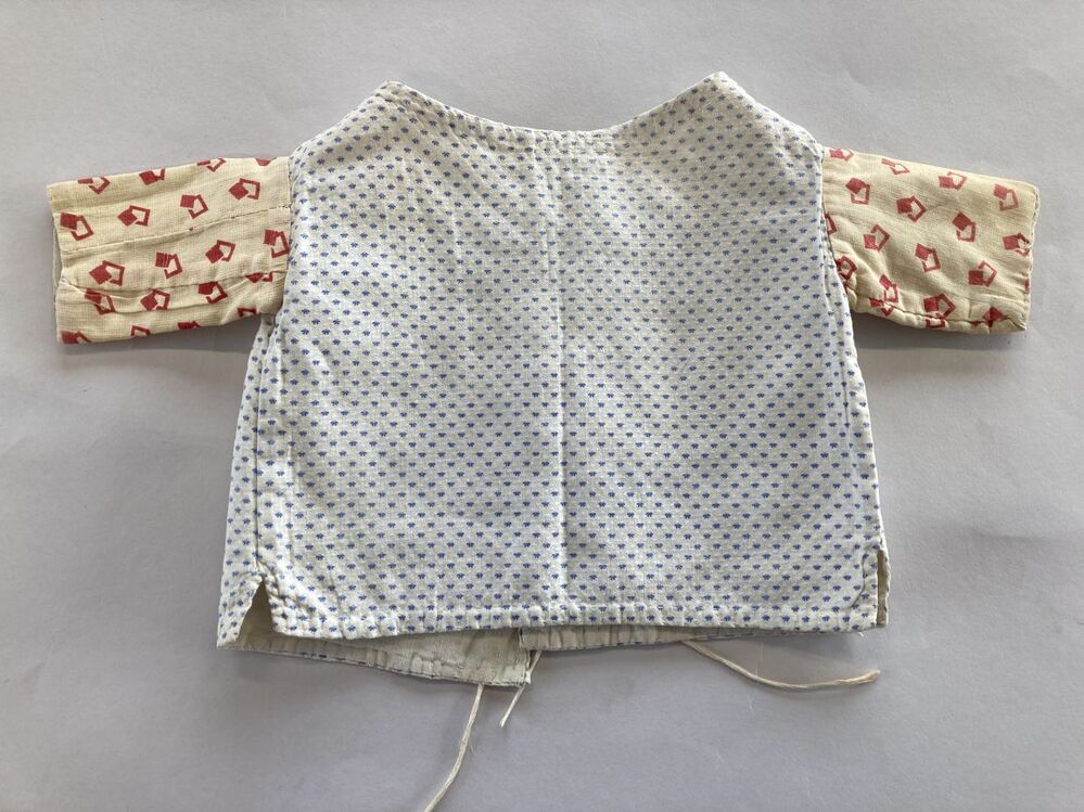 Jakje van bedrukt katoen met mouwen van afwijkende stof.