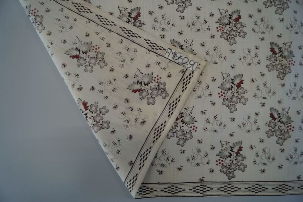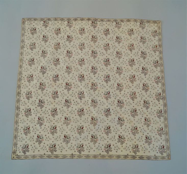 Vierkante bedrukte katoenen doek of sjaal met boeketjes en geometrische rand