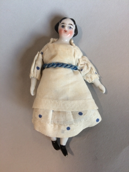 Pop uit kartonnen Rademakers hopjes doos met in totaal 10 geklede popjes van porselein