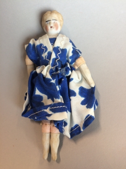 Pop uit kartonnen Rademakers hopjes doos met in totaal 10 geklede popjes van porselein
