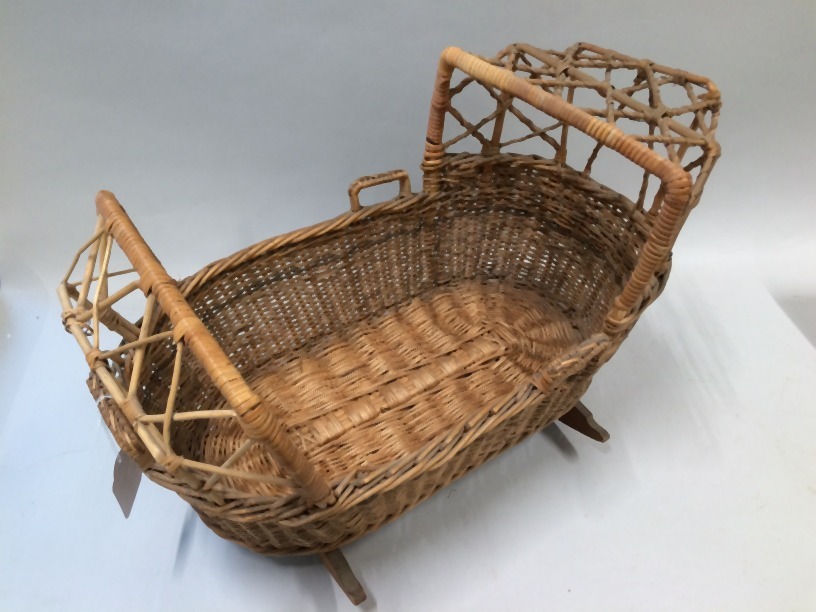 Wieg, onderdeel van pop en wieg met bijbehoren en poppekleertjes, 19e eeuw