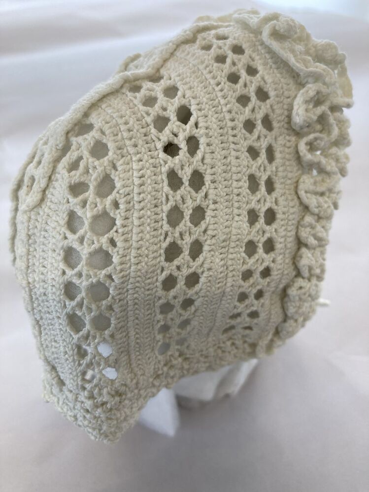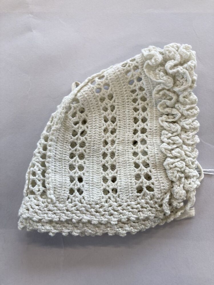 Wit gehaakt katoenen babymutsje,met hanekam