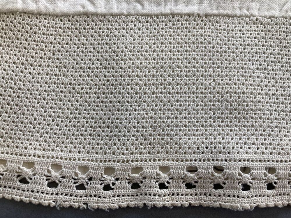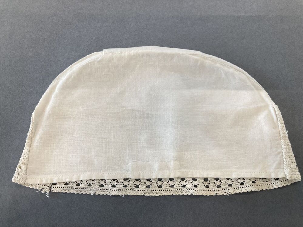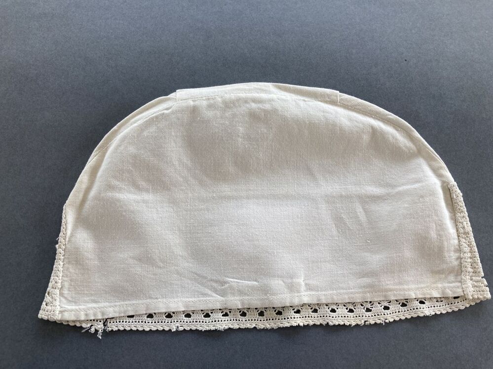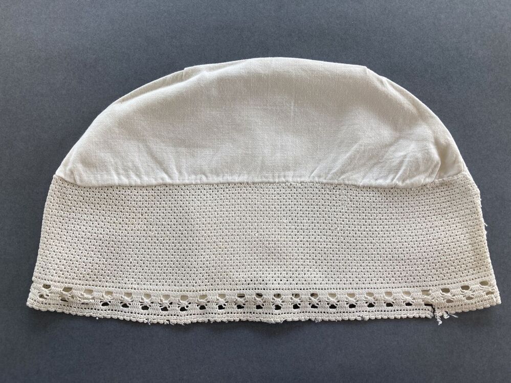 Witte katoenen ondermuts, of tipmuts en ajour gehaakte strook in de nek