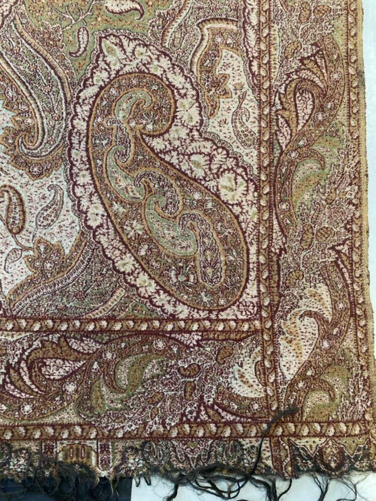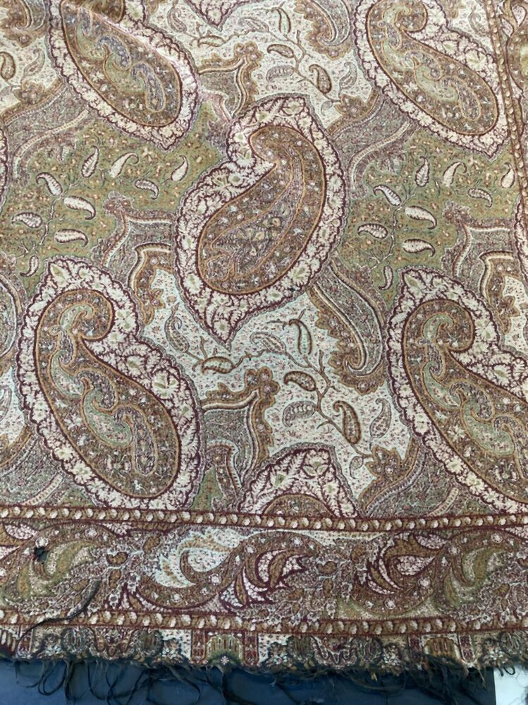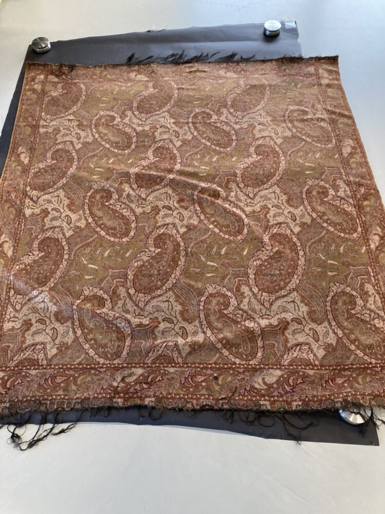 Omslagdoek van wol met verspreid over doek ingeweven buta figuren