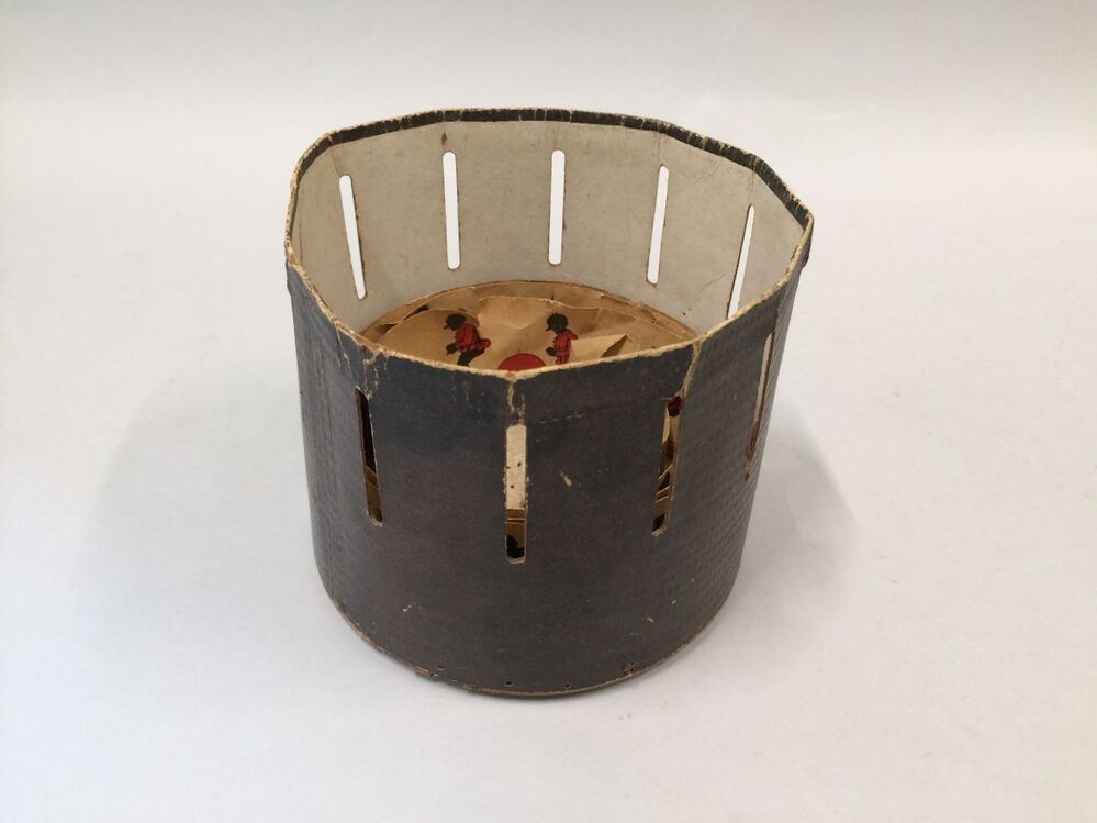 Stroboscoop op houten voetstukje en drie dubbele strips