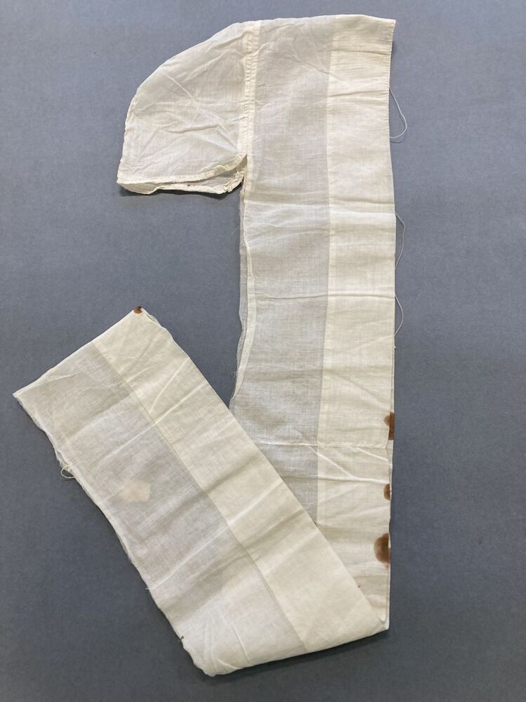Witte rouwfloddermuts van neteldoek, onopgemaakt
