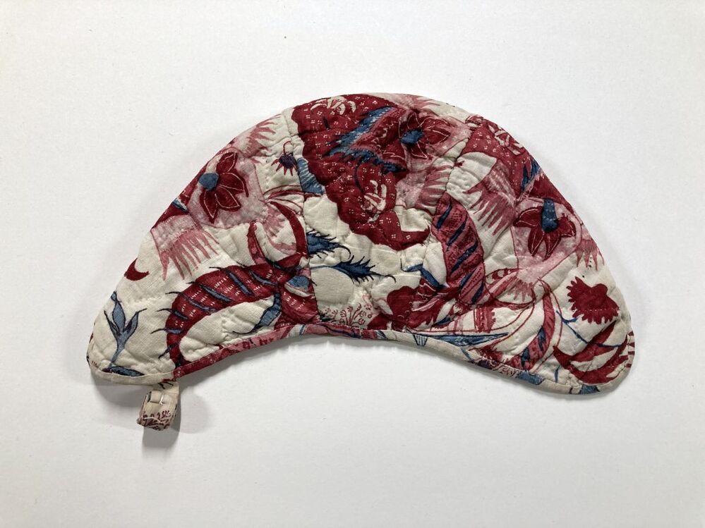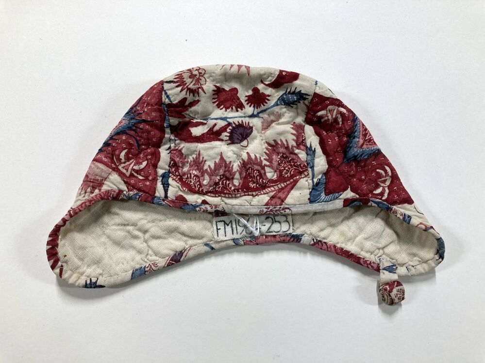 Sitsen meisjesmuts, fijn gedetailleerde fantasiebloemen op witte grond