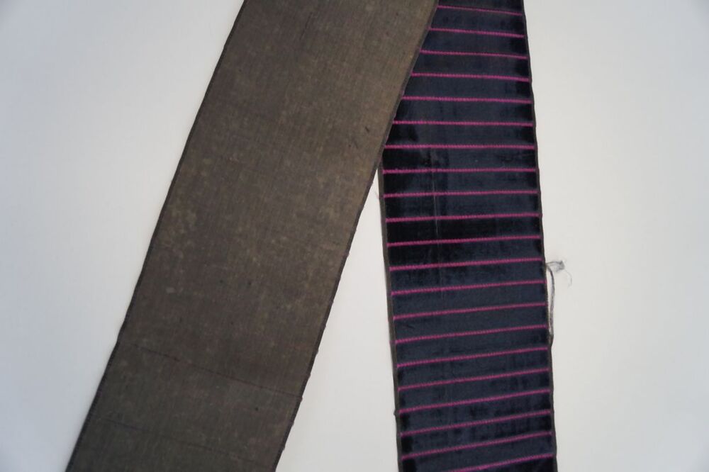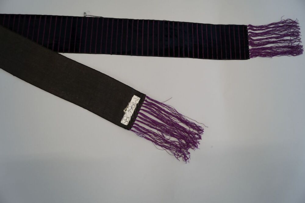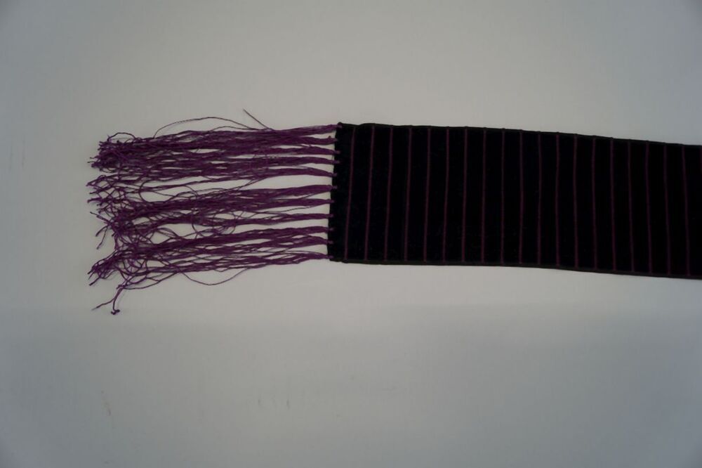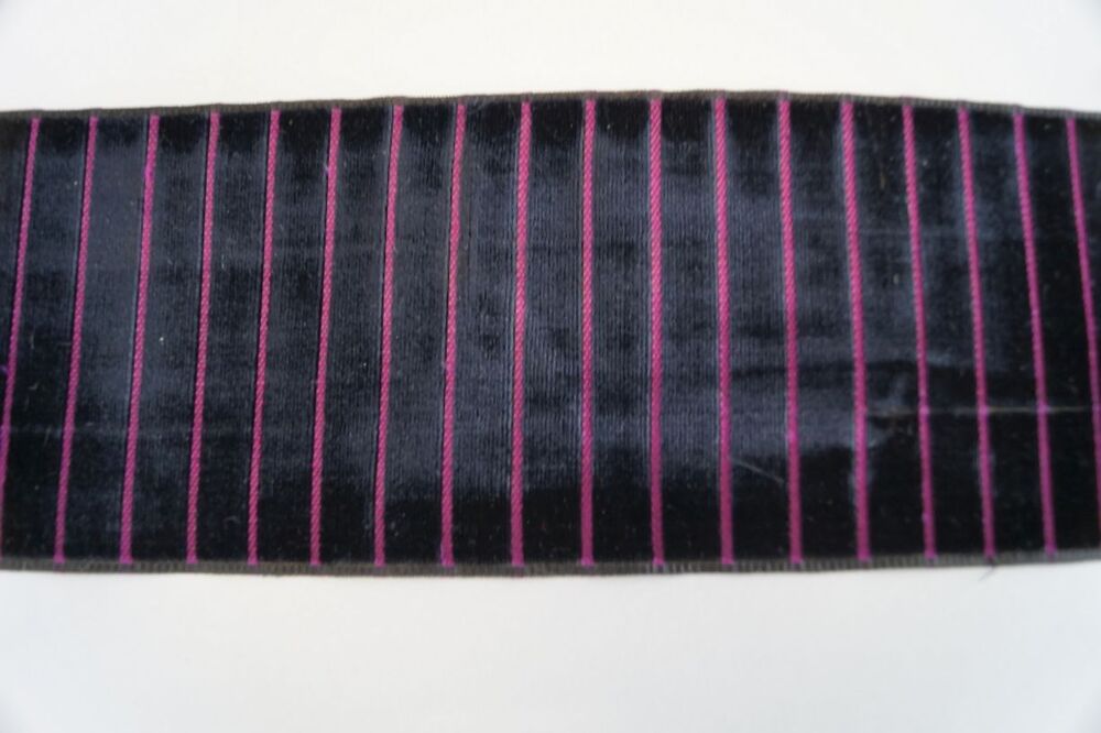 Sjaaltje van dwarsgestreept fluwelen lint in zwart met paars