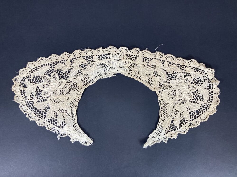 Cremekleurige kraag van etskant, breeduitlopend op de schouders
