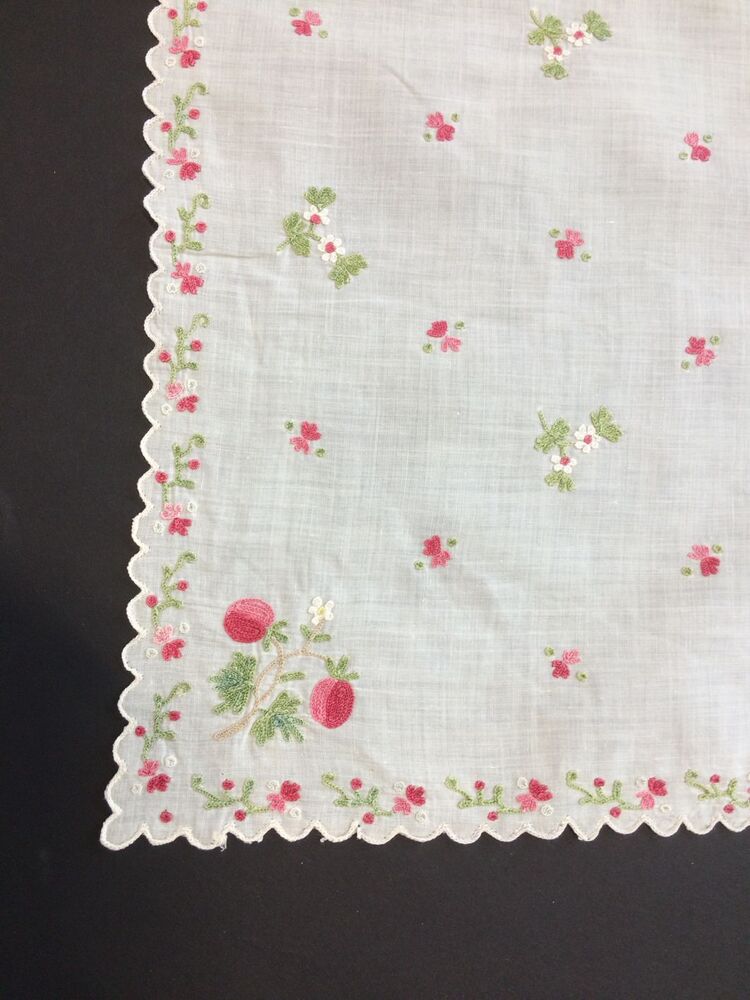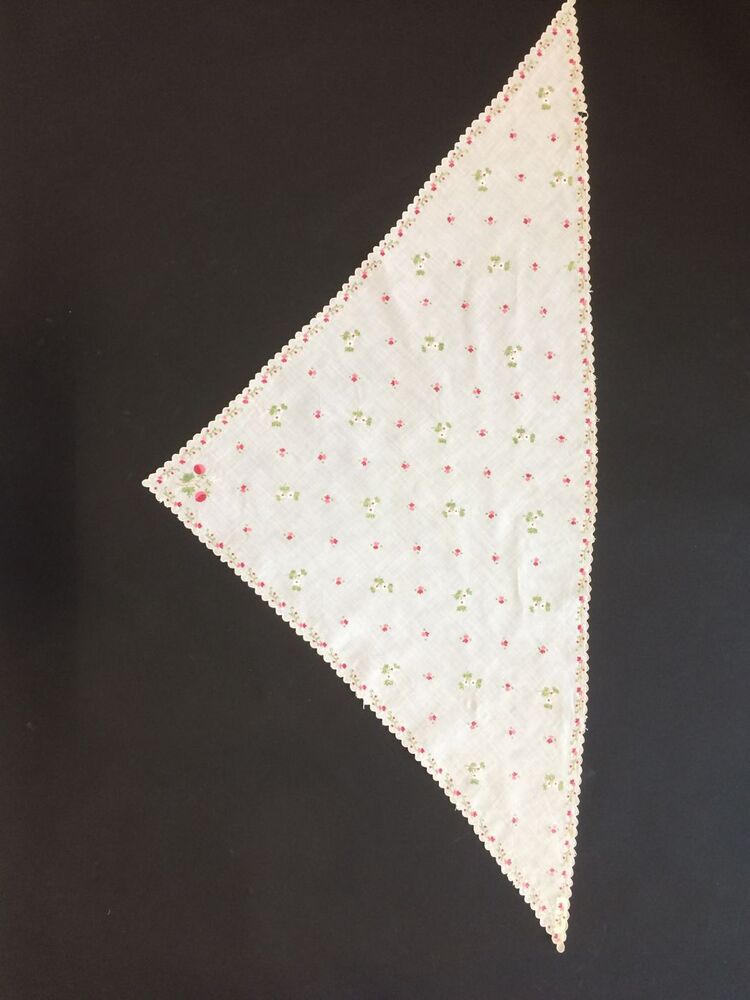 Fichu getamboereerd met kleine rozerode bloempjes en takjes met witte bloempjes, met fijn geschulpt randje rondom