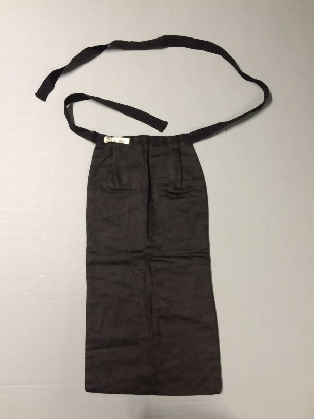 Voorspanzak van zwarte damast, voorzien van bloem en bladpatroon, droegen de vrouwen om het middel onder de rok