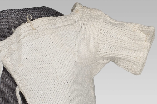Poppehemdje met korte mouwtjes van gebreid wit katoengaren