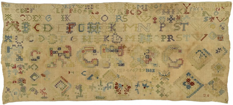 Lettermerklap, rommelig van opzet, gemerkt A.C. anno 1679