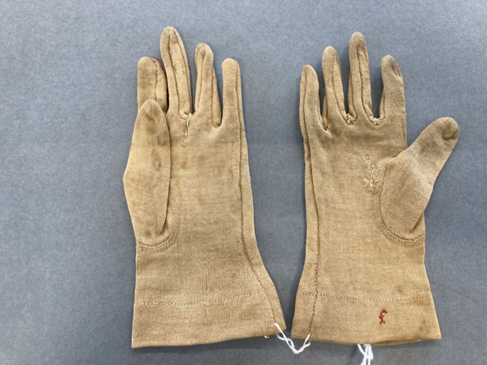 Paar kinderhandschoentjes van tricot, gemerkt in rood J